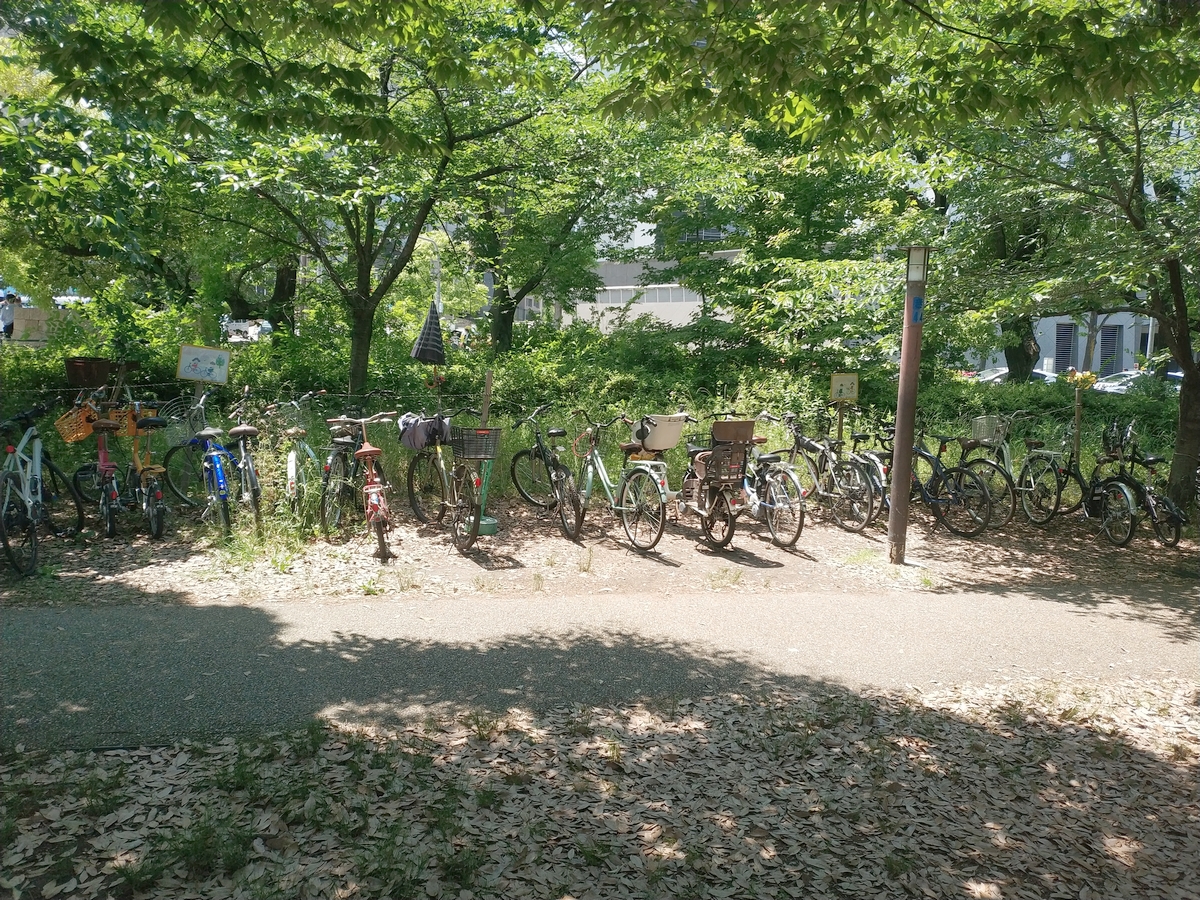 散策したいので周辺に駐輪場がないか移動していると、駐輪場というより自転車置き場というほうがふさわしい場所に置いて散策開始です。